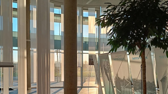 “Vi er især glade for et resultat, der fremhæver arkitekturen; fx bannere, der visualiserer loftshøjden på en let og elegant måde og sofaernes organiske former, der taler ind i bygningens runde udformning.”