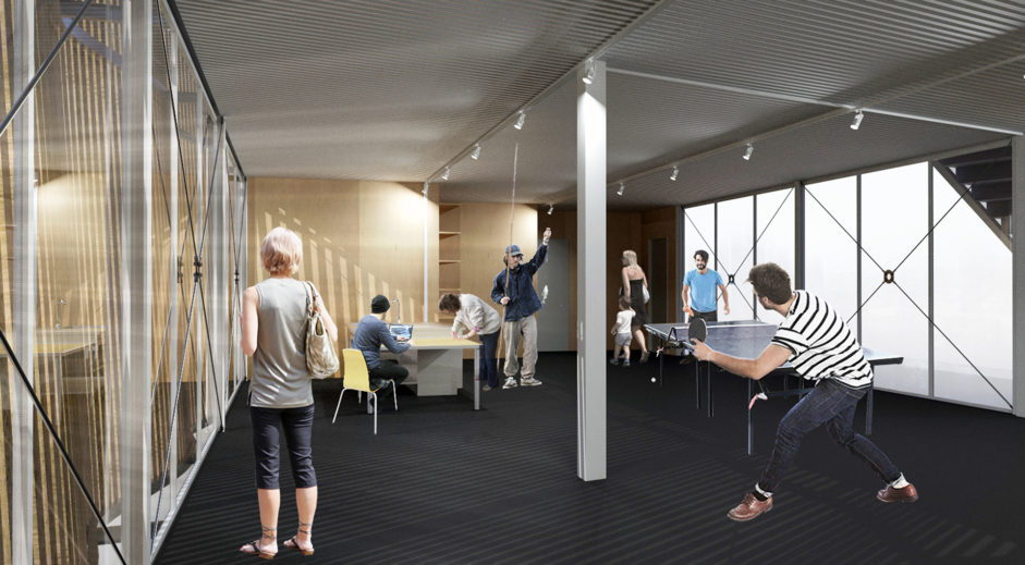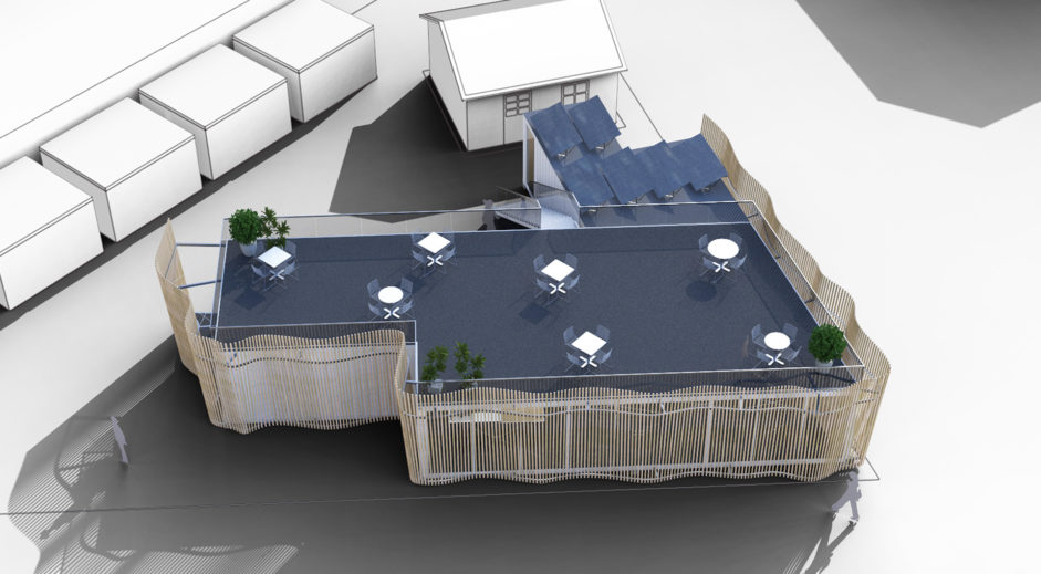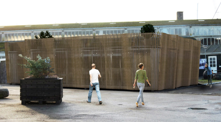 Huset bygges af seks containere, som lægges sammen til ét rum. På to sider bliver det omgivet af en bølge af lærketræ, som med tiden vil tage farve af vind, vejr og hav.