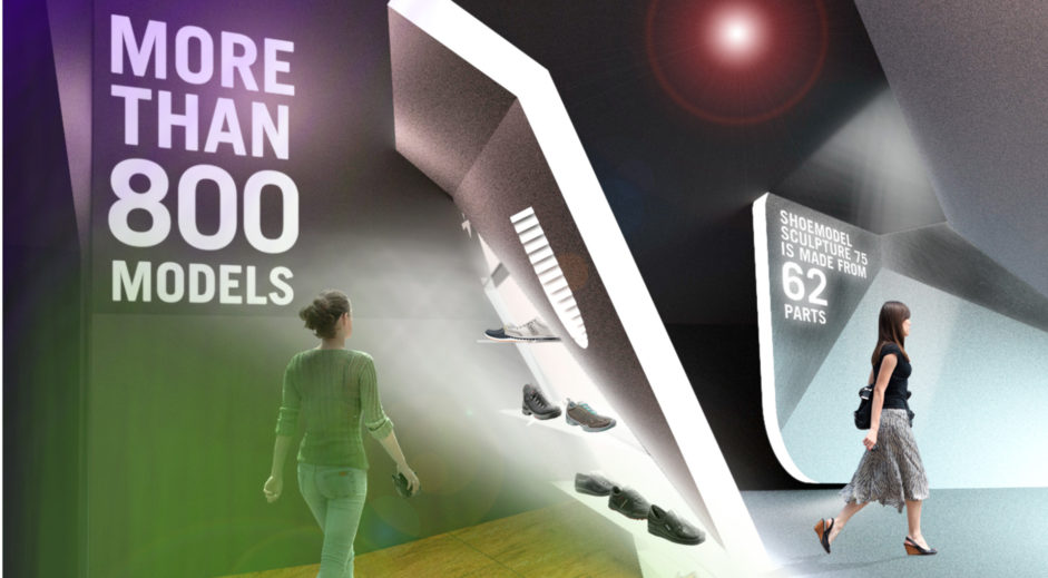 En historie fortalt fra et lokalt afsæt, men med et globalt perspektiv. Historien om ECCOs skomagere – helt nede på jorden, og samtidig et unikt, internationalt brand. Skoæsken er en metafor for udstillingsrummets design og scenografi.