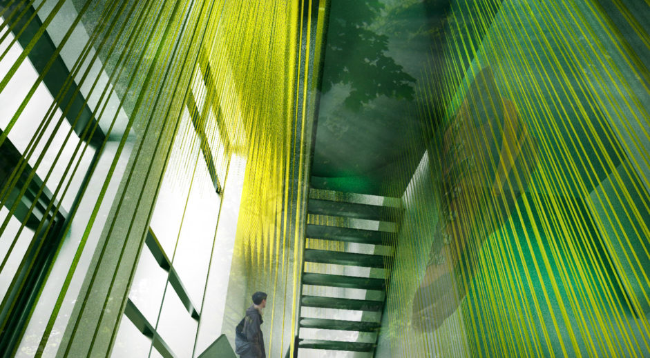 En delvis udfoldet æske – et centralt placeret element i overstørrelse – opdeler rummet på en spændende og overraskende måde – og former vægge og svagt hældende gulve nogen steder. En utrolig ekspressiv form inviterer besøgende til at udforske, fordybe sig og få en dejlig og anderledes oplevelse midt i rummene.
