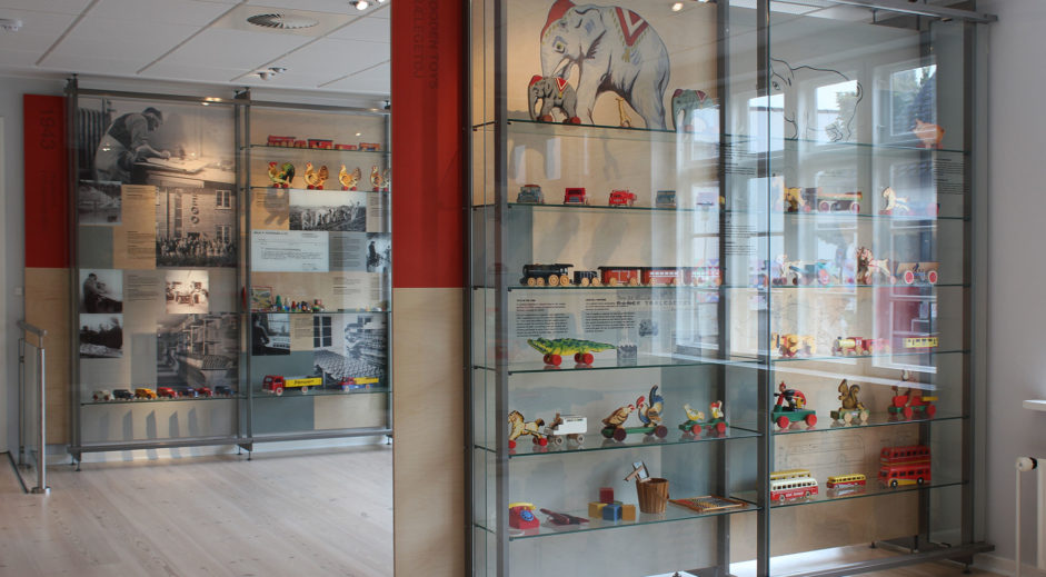 Prototyper, støbeforme, produktemballage, reklamemateriale, fotos, citater, dokumenter og milepæle skildrer LEGOs 85 års fokus på at udvikle børns kreativitet gennem leg og læring – først i træ og siden i plast – og er samtidig en unik introduktion til børneliv siden 1930’erne.