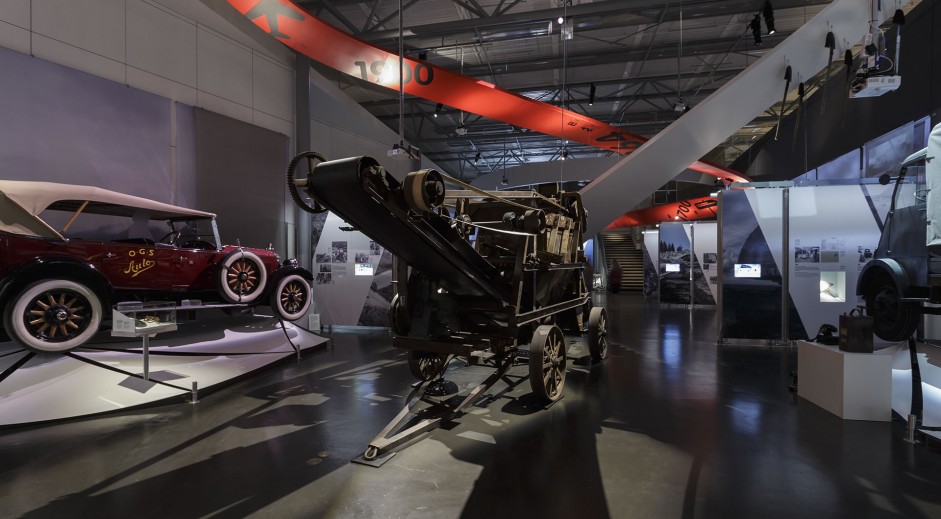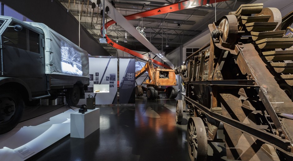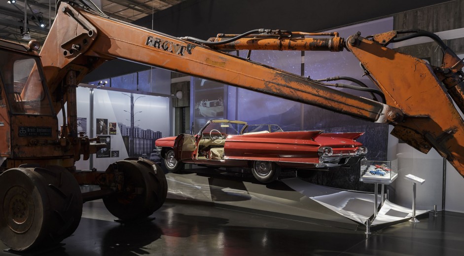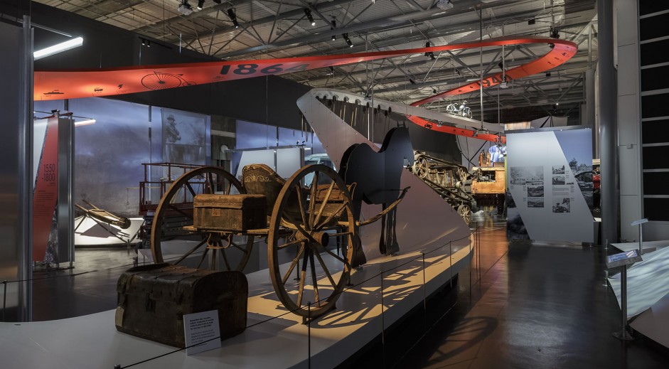 Sammen med en utrolig varieret udstillingsscenografi med køretøjer, maskiner, levende billeder og lydkompositioner i massevis omslutter og indtager vejforløbene hele rummet. 41 projektorer, 28 skærme og omkring 100 genstande og skiltning indgår i formidlingen.
