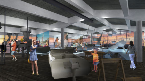 Vel oppe har man følelsen af at være kommet i havn på en smuk sensommeraften. Her er lyset varmere og stemningen mere intim. Her møder man også bådbyggerens værksted. På vej henimod trappen lokker et stort galleri med bådmotorer, som man meget gerne må både se og røre ved. Den stemningsfulde udstilling i to etager har også et ekspressivt digitalt lag.